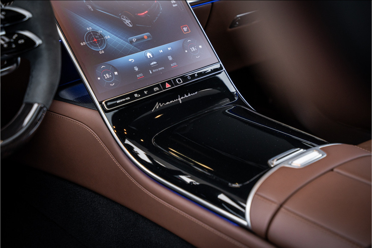 Een zeldzame en buitengewoon indrukwekkende Mercedes-AMG S63 E Performance, uitgevoerd met het luxe Manufaktur-pakket, waar comfort, prestige en brute prestaties samenkomen in één high-end slee. Deze top-S combineert de laatste AMG technologie met ultiem vakwerk, zowel van buiten als van binnen, waardoor hij niet zomaar een statement is maar een echt beleving op wielen.