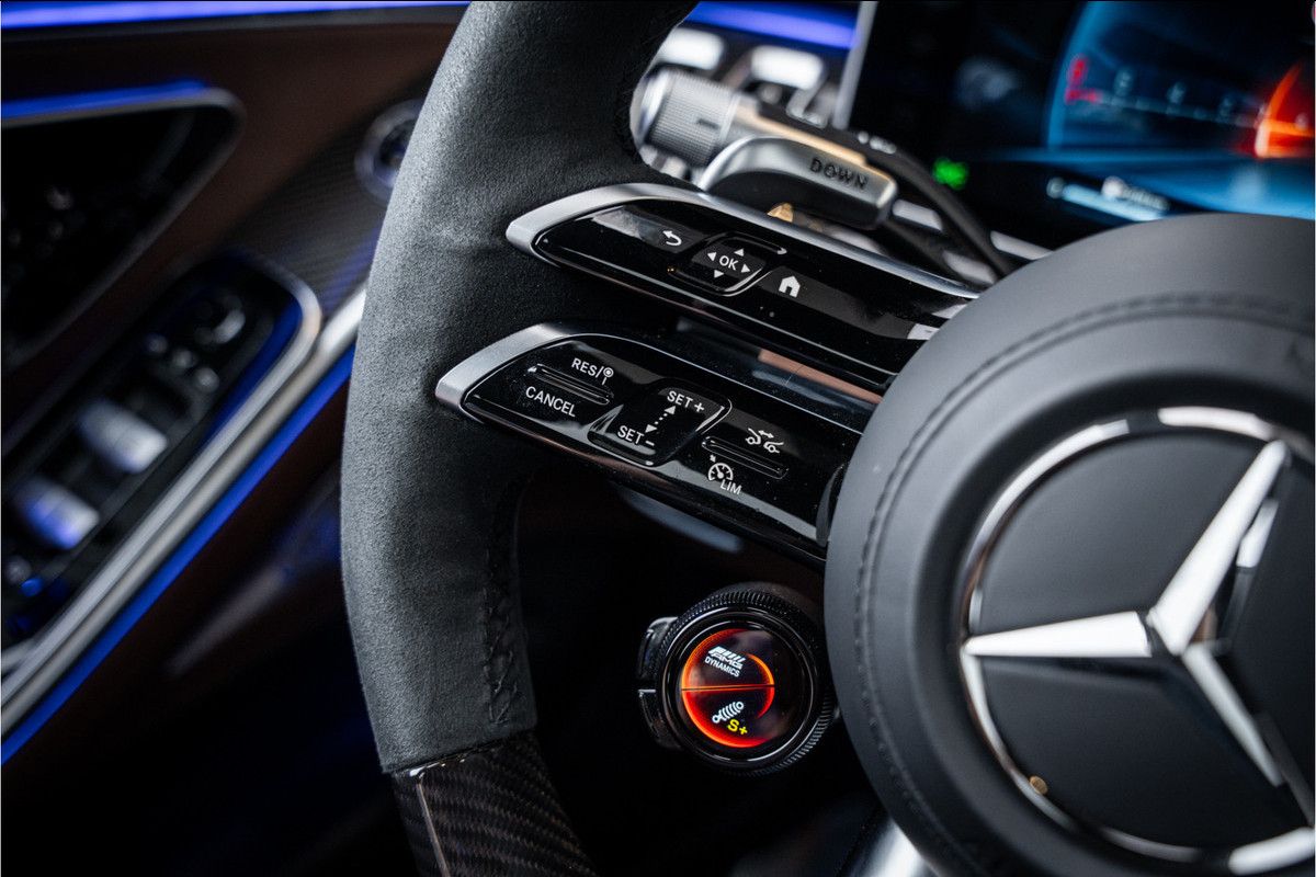 Qua techniek laat de S63 E Performance niets te wensen over: AMG Performance 4MATIC+ vierwielaandrijving, adaptieve luchtvering met AMG Ride Control+, actieve rolstabilisatie en achterasbesturing zorgen dat deze limousine niet alleen razendsnel is op rechte stukken, maar ook imponerend stabiel en wendbaar in bochten.