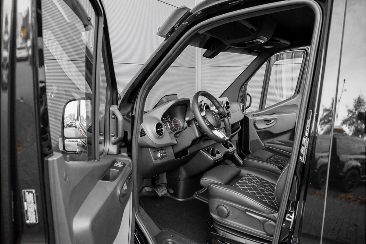 Wij hebben op deze Sprinter nog wat extra's opgebouwd. Deze zitten bij de prijs in. Dit gaat om: 20" Lichtmetalen velgen zwart, lederen bekleding met wiebertjes, frontsplitter, achterspoiler, trekhaak, sidesteps.