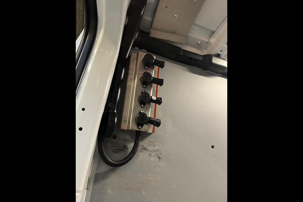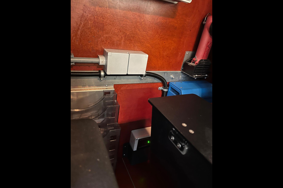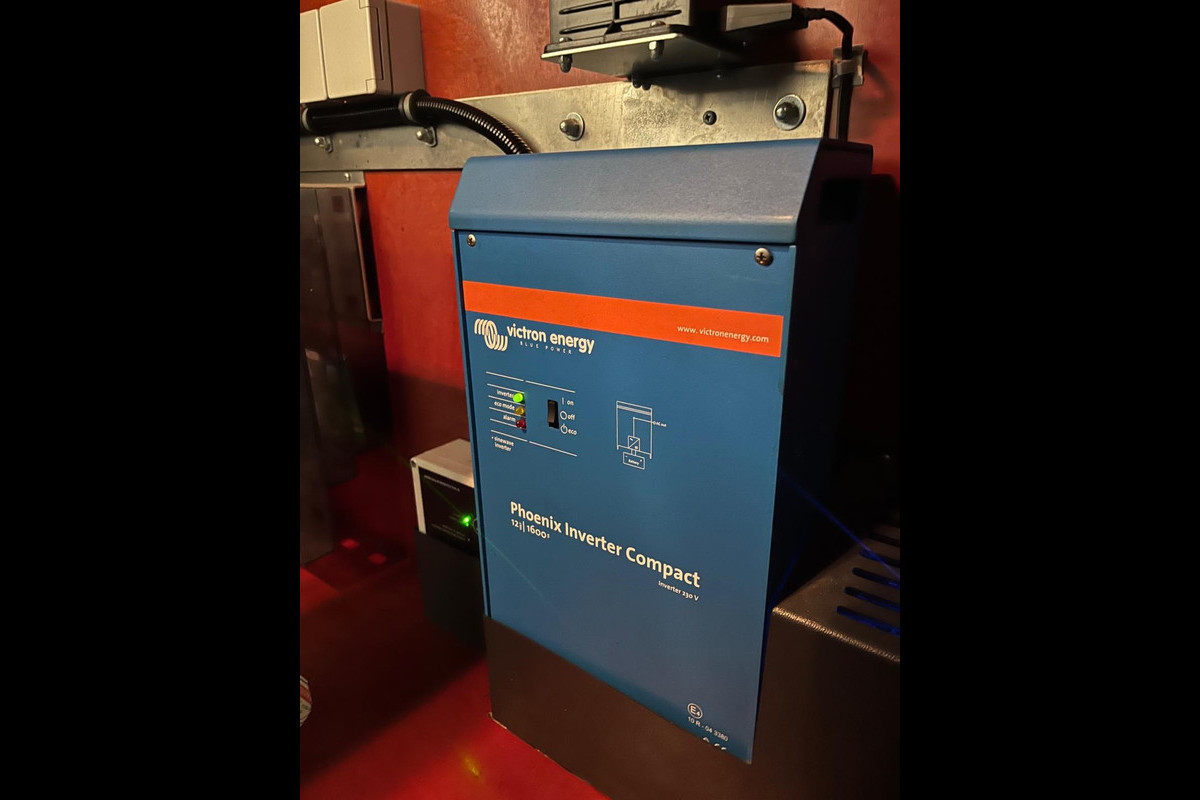 - Stroom op locatie verschillende v230 stopcontacten en 12v aansluitingen doormiddel van een Victron omvormer 12volt voor 230v / 220v met accu. Deze wordt geladen als de bus rijd.