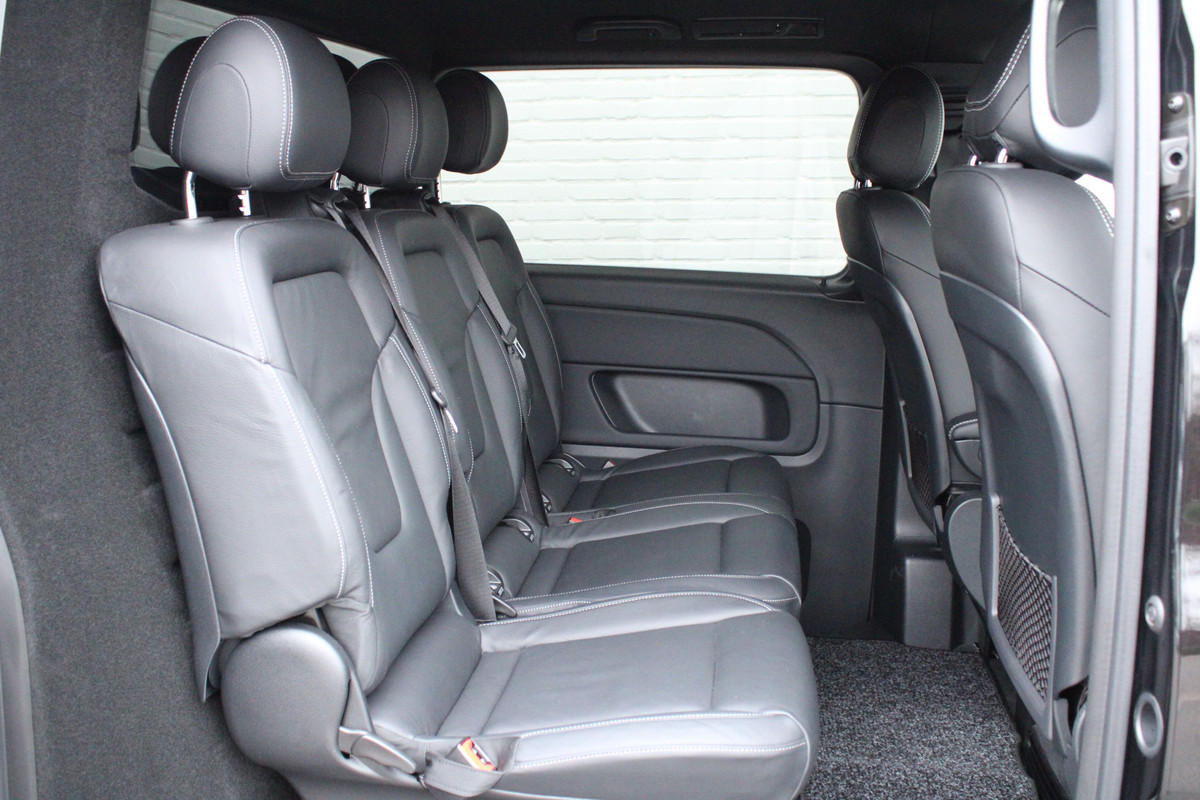 Deze Mercedes-Benz V-klasse staat voor u klaar. Een geweldige, nog jonge occasion die goed is voor gemakkelijk nog een tonnetje of twee op de teller. De AMG-sportpakket van deze auto is zowel smaakmakend als spraakmakend. De auto heeft een opmerkelijk lage kilometerstand van slechts 12522 De krachtige dieselmotor staat garant voor uitstekende prestaties. Als we het over kwaliteit en stijl hebben, wat dacht u dan van het lederen interieur? De verwarmbare voorstoelen zijn een weldaad voor rug en schouders. Ontspannen rijden in een optimale zithouding: daarvoor zorgen de comfortstoelen. Een handige voorziening op deze auto is de elektrische achterklep die u op afstand kunt openen. Met de krachtige xenonverlichting heeft u optimaal zicht in het donker. Onverhoeds de deur opengooien is een risico voor passerend verkeer. De schuifdeur aan de zijkant is dus gemakkelijker én veiliger. Bij de uitrusting van deze Mercedes-Benz horen onder meer 19 inch lichtmetalen velgen, LED koplampen, AMG-sportpakket, sportonderstel, adaptief dempingsysteem en warmtewerend glas.
