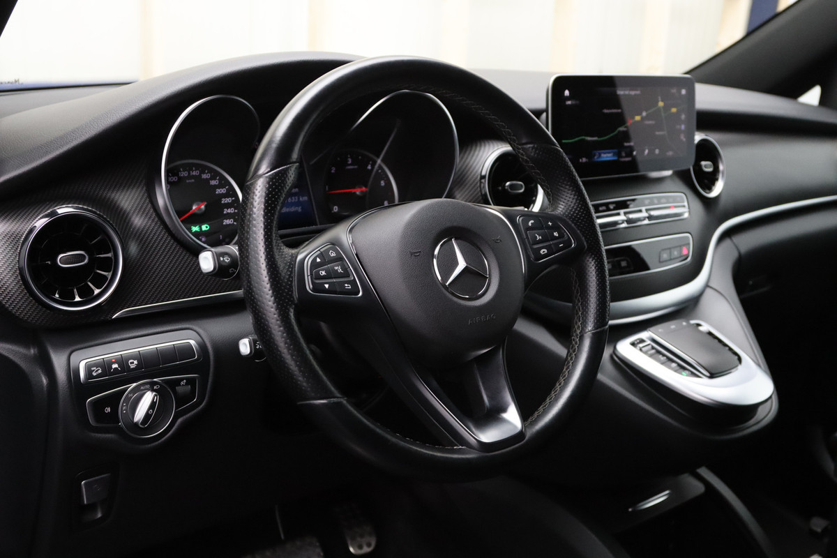 Kijk voor een uitgebreide fotoreportage op onze site. Dit betreft een zeer nette en goed uitgeruste Mercedes-Benz V-Klasse met talrijke mooie opties zoals: afneembare trekhaak, Burmester Audio, rondomzicht camera, adaptieve cruise control, etc. Alle historie is aanwezig. 56.950,- euro ex. BTW betreft een scherpe, rijklare basisprijs. De prijs inclusief nieuwe APK, onderhoudsbeurt indien nodig en twaalf maanden BOVAG garantie komt uit op 58.200,- euro ex. BTW. Inruil is geen enkel probleem. Heeft u interesse en wilt u ons bezoeken? Om ervoor te zorgen dat we voldoende tijd voor u hebben, vragen we u om een afspraak te maken voordat u langskomt. Dit helpt ons om u zo goed mogelijk van dienst te zijn. De koffie staat klaar. **Wij doen ons uiterste best om de informatie van onze advertenties zo correct en actueel mogelijk weer te geven. Aan bovenstaande informatie kunnen echter geen rechten worden ontleend. Controleer daarom samen met ons de aanwezige opties en accessoires op de auto van uw keuze.**