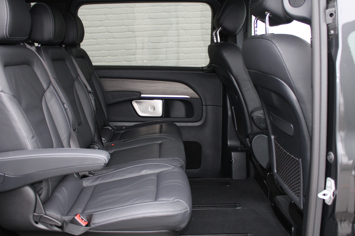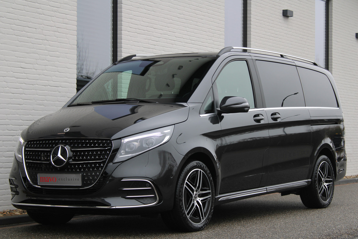 Kiest u voor een gewone goede auto, of liever meteen maar voor een Mercedes? Goed idee, want het motto is 'The best or nothing'. Grijze muizen zijn er al genoeg. Daarom heeft deze auto een lekker pittige AMG-sportpakket. Hoewel de auto uit 2024 komt, heeft hij maar 19178 kilometer gereden. Met zijn dieselmotor en automatische transmissie is dit een prima auto voor nog vele kilometers. Van binnen is deze Mercedes-Benz V-klasse mooi uitgevoerd met een classy lederen interieur. Neem plaats op de comfortabele stoelen. Dankzij de elektrische bediening en het geheugen is het eenvoudig om hierin de beste zitpositie te vinden. Een praktische extra is de elektrisch bedienbare achterklep die opent en sluit met een druk op de knop. Koude handen? Da's voorbij met het verwarmd stuurwiel. Pak aan! Xenonverlichting zorgt in het donker voor beter zicht. Ook bij een wat krappere parkeerplek stappen passagiers gemakkelijk in en uit via de schuifdeur. Tot de uitrusting behoren ook 19 inch lichtmetalen velgen, LED koplampen, AMG-sportpakket, sportonderstel, adaptief dempingsysteem en warmtewerend glas.