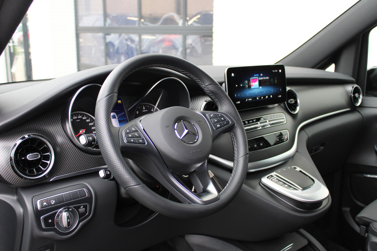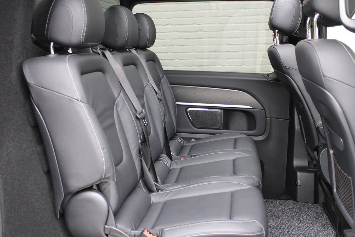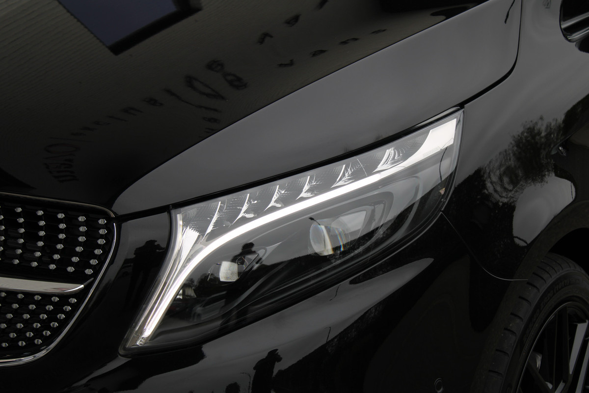 U ziet het al aan de buitenkant en u voelt het zodra u de krachtige motor start, deze sportieve Mercedes-Benz V-klasse is gemaakt om prestaties te leveren. De begrippen exclusief en sportief zijn allebei van toepassing op de markante AMG-sportpakket. Op de teller van deze auto staat slechts 4042 kilometer. De krachtige dieselmotor staat garant voor uitstekende prestaties. Maximaal comfort en stijl krijgt u dankzij het lederen interieur. Deze Mercedes-Benz V-klasse legt bestuurder én bijrijder compleet in de watten met de verwarmbare voorstoelen. Neem plaats achter het stuur en ervaar de weldaad van de comfortstoelen. De achterklep opent automatisch met een druk op de knop. Handig als u met volle handen staat. Het interieur baadt in een zee van licht door het glazen panoramadak. In het donker zorgt de xenonverlichting voor een goed zicht op de weg. Bij de zeer complete uitrusting van deze auto behoren ook LED koplampen, AMG-sportpakket, sportonderstel, elektrische schuifdeur, adaptief dempingsysteem en warmtewerend glas.