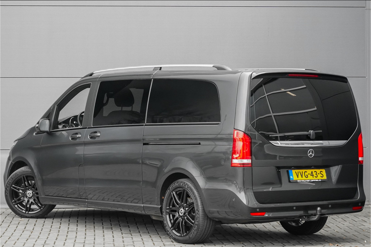 Autobedrijf Schouten biedt u deze Mercedes-Benz V-Klasse 300d Extra Lang DC AMG Line aan, origineel Nederlands en afkomstig van de tweede eigenaar. Het exterieur van de Mercedes-Benz is uitgevoerd in de metallic kleur: 'Graphitgrau', gecombineerd met een zwart lederen bekleding. Verder beschikt de Mercedes-Benz V-Klasse 300d Extra Lang DC AMG Line over een mooie lijst met fabrieksopties. Denk hierbij aan opties zoals: