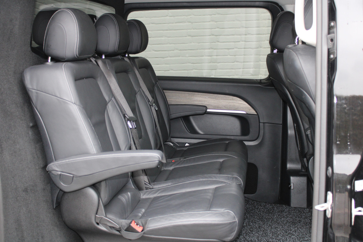 Deze Mercedes-Benz V-klasse gaat met gemak nog vele, vele, vele tienduizenden kilometers mee. Energiek rijgedrag, fraaie uitstraling en een plezier om in te rijden, deze Mercedes-Benz V-klasse. De krachtige motor geeft deze Mercedes-Benz uitstekende prestaties. Zegt u nou zelf: niks is in de auto toch aantrekkelijker dan de geur van een lederen interieur? Tenzij u meer geniet van gemak. En daarvoor is de elektrisch bedienbare achterklep. Tijdens koude winterdagen verjaagt uw stoelverwarming de kou en maakt het rijden heerlijk comfortabel. Ook in winterse omstandigheden is rijden een plezier, niet in de laatste plaats dankzij het verwarmd stuurwiel. Xenonverlichting staat borg voor helderwit licht en een krachtige lichtbundel. Parkeerschade door openslaande deuren is er niet bij. De schuifdeur wordt dicht langs de zijkant geleid en uitstappen gaat supergemakkelijk. Bij de rijke uitrusting horen ook LED koplampen, sportonderstel, adaptief dempingsysteem, warmtewerend glas, LED-achterlichten en verwarmde ruitensproeiers.