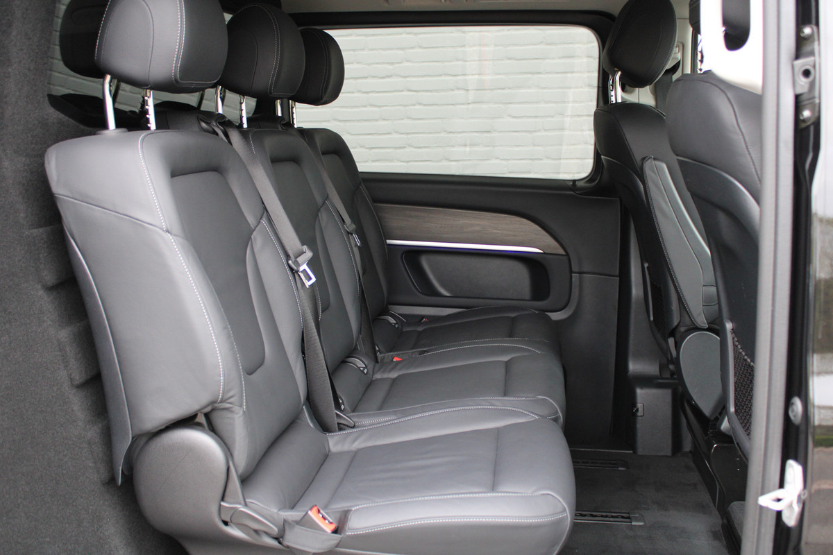 Al decennia staan Duitse merken bekend om hun ongeëvenaarde kwaliteit en prestaties. En dat geldt zeker ook voor deze Mercedes-Benz V-klasse. De aandrijving van deze Mercedes-Benz wordt verzorgd door een viercilinder dieselmotor en een automatische transmissie. Een blik van dichtbij onthult meteen twee mooie pluspunten: het lederen interieur en de elektrisch bedienbare achterklep. Dankzij de stoelverwarming heeft u in deze auto nooit meer last van een koude rug of koude benen. Fijn plusje, zeker in de kille dagen, is het verwarmd stuurwiel. Xenonverlichting staat borg voor helderwit licht en een krachtige lichtbundel. De schuifdeur voor de passagiers neemt veel minder ruimte in bij het opengaan; prettig als u wat krapper moet parkeren. U wordt in deze auto ook getrakteerd op LED koplampen, sportonderstel, adaptief dempingsysteem, warmtewerend glas, LED-achterlichten en verwarmde ruitensproeiers.