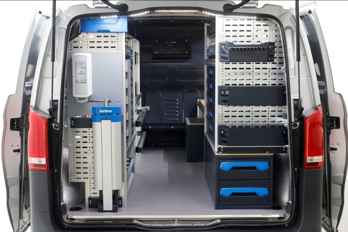 Deze 136pk sterke Vito 114 CDI is van 05-2022 en heeft slechts 123.000km gereden! Compacte en wendbare L1H1, direct inzetbaar vanwege reeds gemonteerde inrichting.