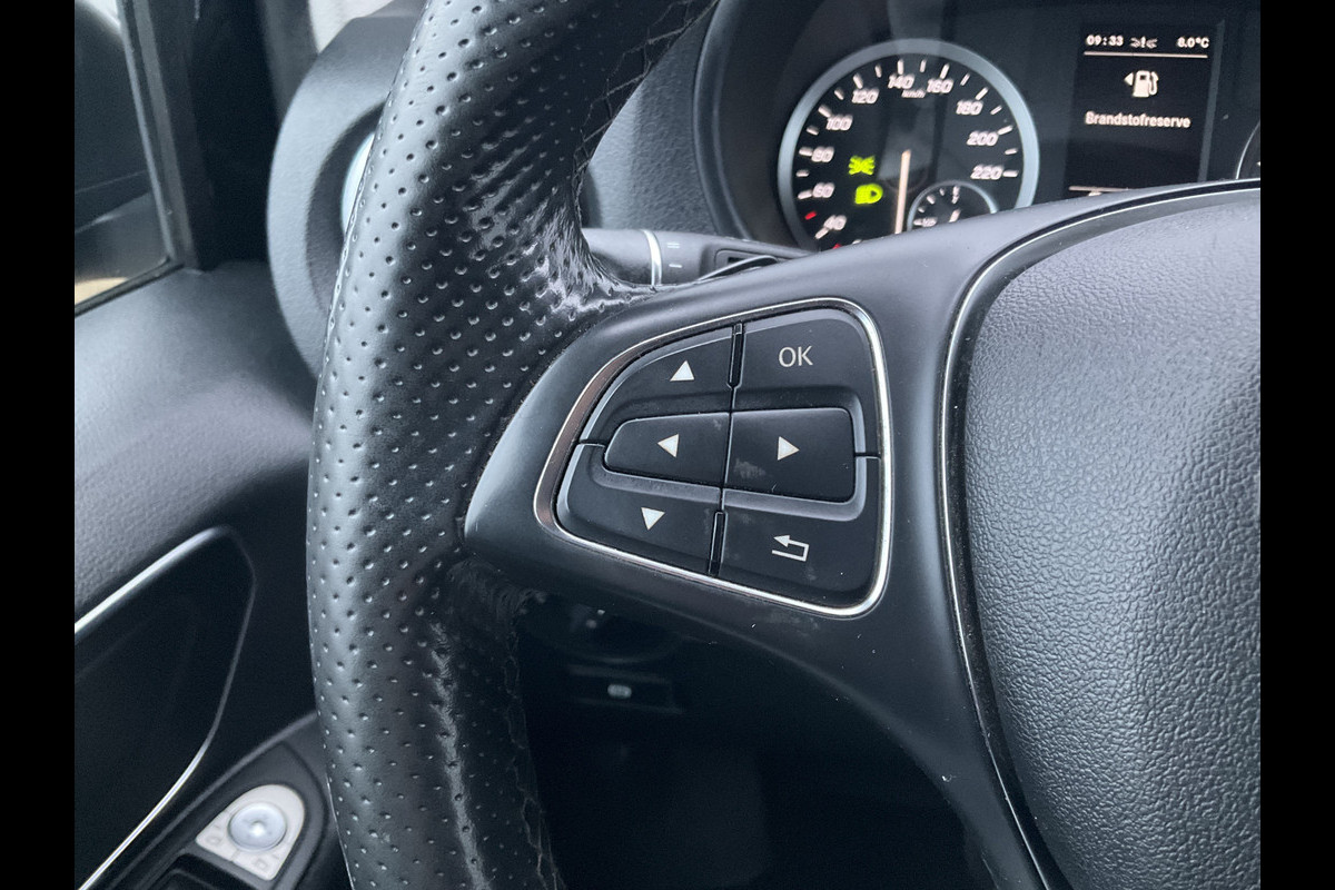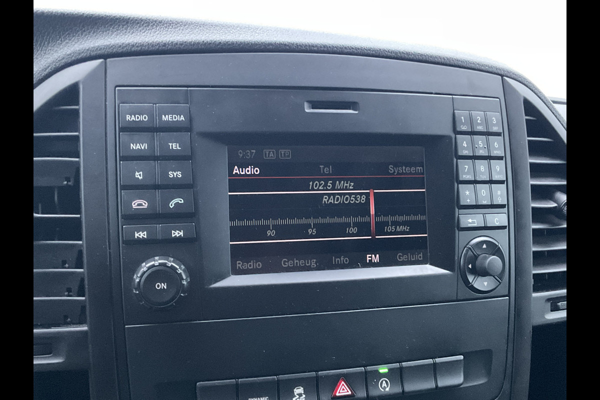 Deze Mercedes-Benz Vito Tourer is 'connected'. Belangrijke functies worden permanent gemeten en zijn uit te lezen via een speciale app, ook op afstand. Het audiosysteem bedient u vanaf het stuurwiel, zodat u uw ogen op de weg kunt houden. De sensoren van de achteropkomend verkeer waarschuwing registreren wat er gebeurt in de dode hoeken en achter u. U krijgt meteen een waarschuwing als u een achterligger over het hoofd ziet. In de regen hoeft u niet langer zelf de ruitenwissers in te schakelen. De regensensor zorgt ervoor dat de ruitenwissers altijd op de juiste snelheid werken. U bedient de cruise control eenvoudig zonder uw handen van het stuur te halen. De uitrusting van deze auto is met airconditioning, centrale deurvergrendeling met afstandsbediening, boordcomputer en verstelbaar stuur behoorlijk compleet.