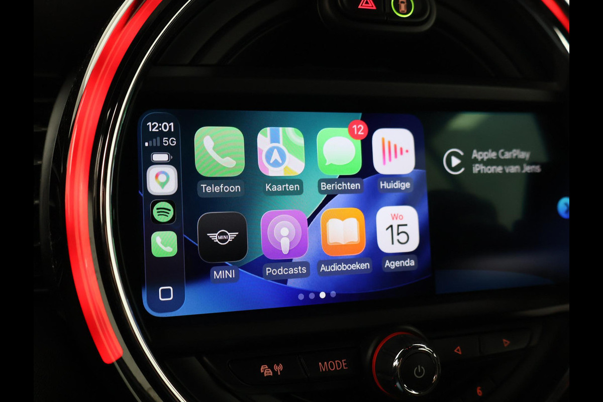 Origineel Nederlandse MINI Cabrio 2.0 John Cooper Works 231 PK automaat in het Rebel Green, RDW nieuwprijs 59.687 euro, Bijzonder compleet met JCW Sportstoelen, Adaptive cruise control, Harman/Kardon premium audio, Apple Carplay / Android Auto, Achteruitrijcamera, Keyless-entry en keyless-drive, Full LED koplampen en LED achterlichten, Zwarte striping met rode accenten, Stoelverwarming, Elektronische voorruitverwarming, DAB digitale radio, Bluetooth, Climate control, Sfeerverlichting interieur met verschillende kleuren, Rode grille en buitenspiegels, Union Jack achterlichten, Union Jack dashboard inleg.