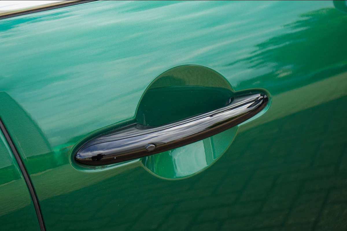 Een echte eyecatcher, zo kan je deze MINI Cooper S wel noemen. Deze prachtige MINI is uitgerust met het John Cooper Works exterieur pakket wat er voor zorgt dat de auto een unieke en sportieve uitstraling heeft. De mooie British Racing Green lak gecombineerd met de zwarte sierlijsten en het zwarte dak geven een mooi contrast en maken de auto helemaal af.
