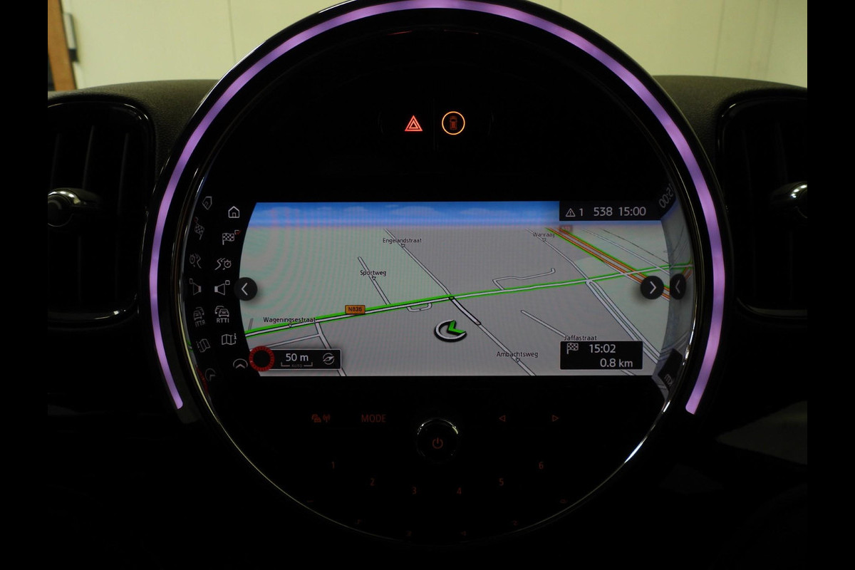 De indeling van het digitale dashboard is zo ingericht dat u met één blik precies weet wat u weten wilt. Soepel inparkeren in de krapste parkeervakken. De achteruitrijcamera maakt het mogelijk. Met adaptive cruise control houdt deze auto automatisch afstand tot uw voorligger. Connected Services zorgen ervoor dat de belangrijkste functies en data van de auto altijd en overal te checken zijn. Gewoon via de app op de smartphone. U kunt tijdens de rit uw ogen steeds op de weg houden, want het audio-installatiesysteem (met dab!) en het full map navigatiesysteem kunt u bedienen vanaf het stuur. Met achteropkomend verkeer waarschuwing, climate control, draadloos opladen, regensensor, keyless entry en automatisch dimmende binnenspiegel is deze Mini helemaal compleet.