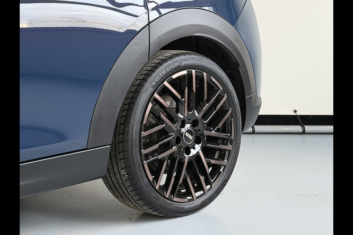 Het eigentijdse interieur wordt natuurlijk helemaal volmaakt met het digitale dashboard. Alles vrij achter? De achteruitrijcamera laat het meteen zien. Ingebouwde spraakbediening maakt het mogelijk om de auto te bedienen zonder dat uw aandacht wordt afgeleid. Deze MINI is 'connected'. Belangrijke functies worden permanent gemeten en zijn uit te lezen via een speciale app, ook op afstand. Het navigatiesysteem zorgt ervoor dat u altijd de juiste en snelste route vindt. Ook WIFI-hotspot, achteropkomend verkeer waarschuwing, automatische airconditioning, draadloos opladen, DAB ontvangst en regensensor horen tot de voorzieningen op deze auto.