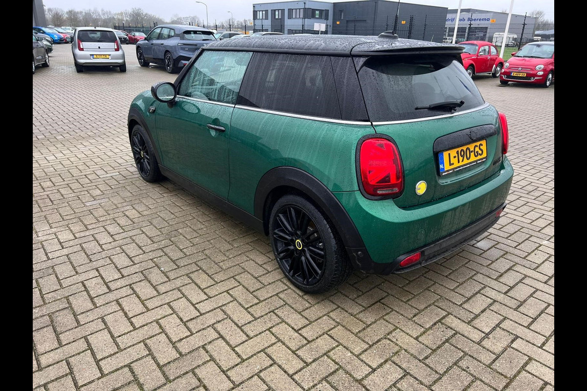 MINI Mini Electric Classic 33 kWh | Panoramadak | Leer | Headup | Stoel- en Stuurverw. | Harman Kardon | Camera | Adap. Cruise | British racing green, zwart dak, Extra getint glas achter, Comfortstoelen, Navigatie, Apple carplay/Android auto
