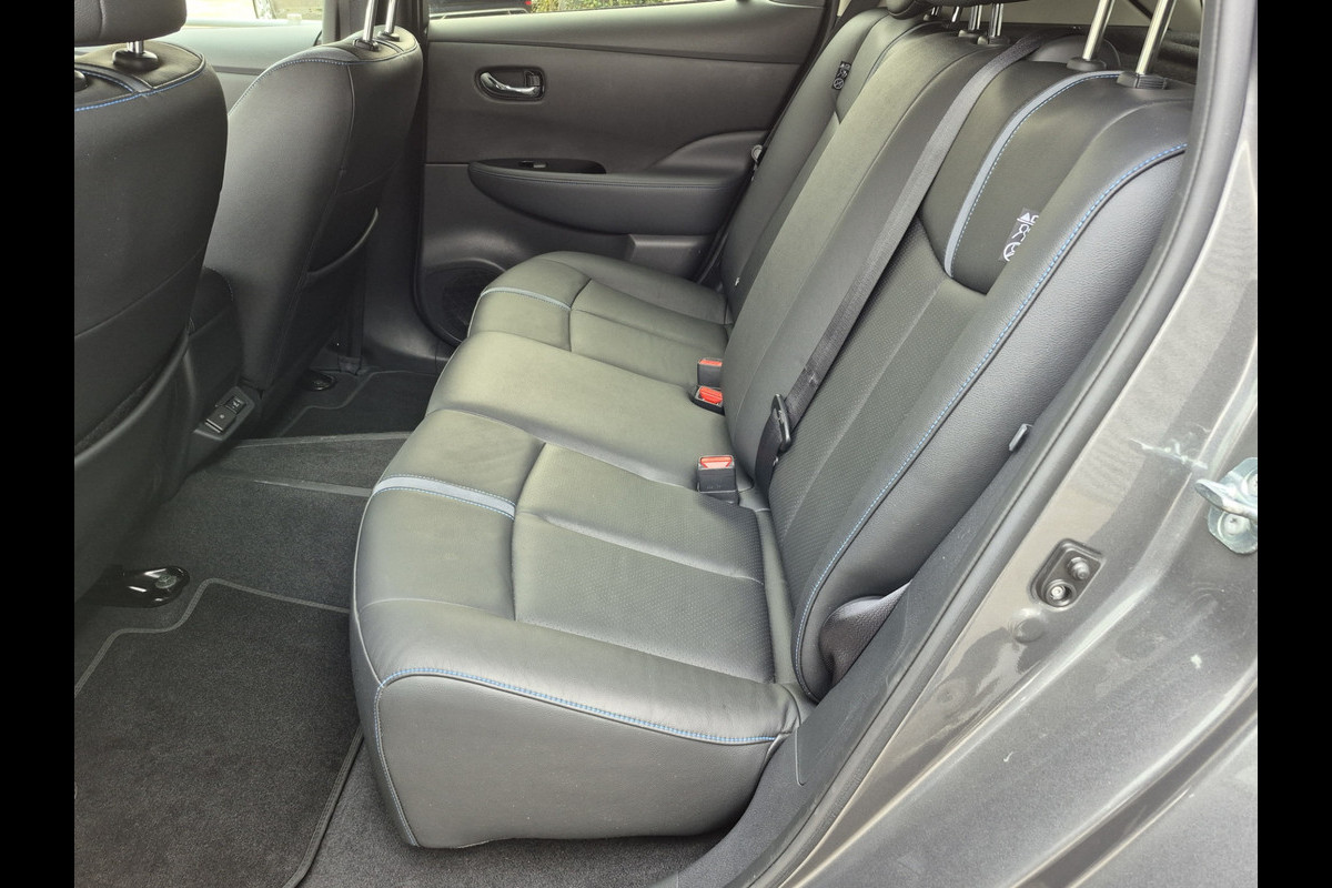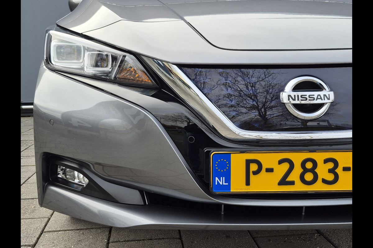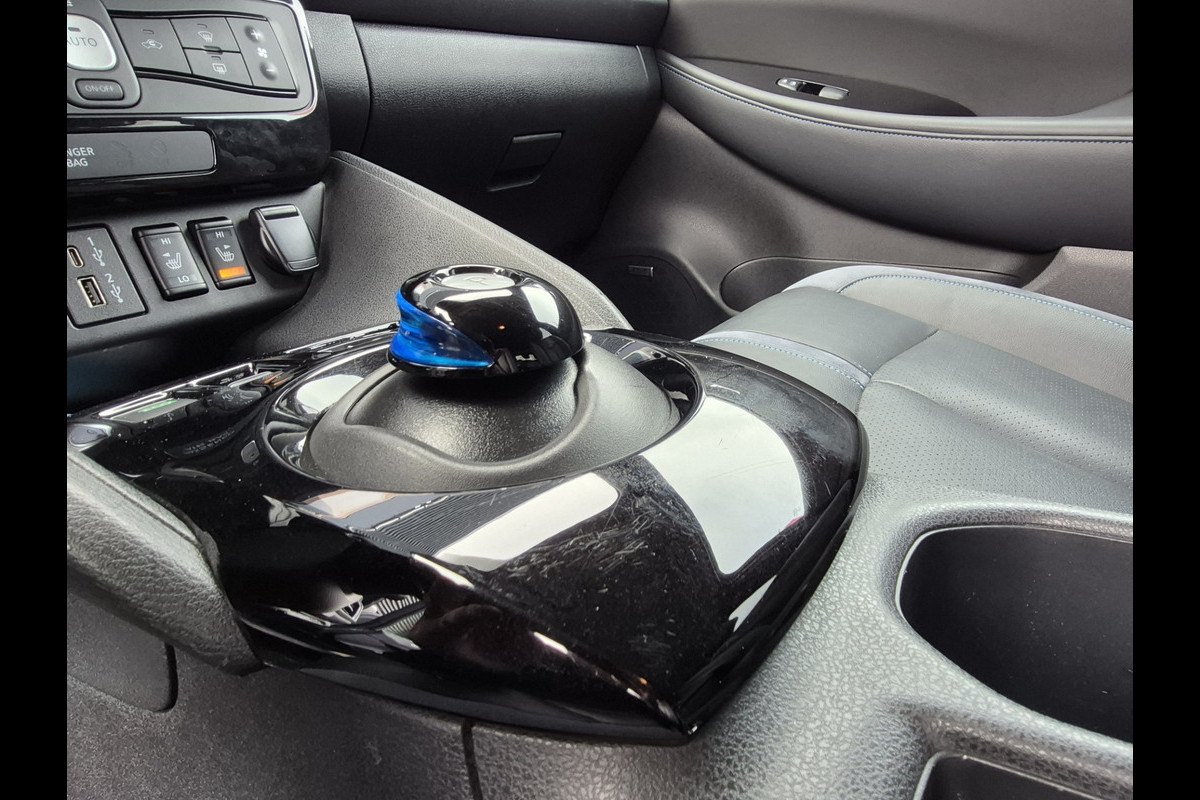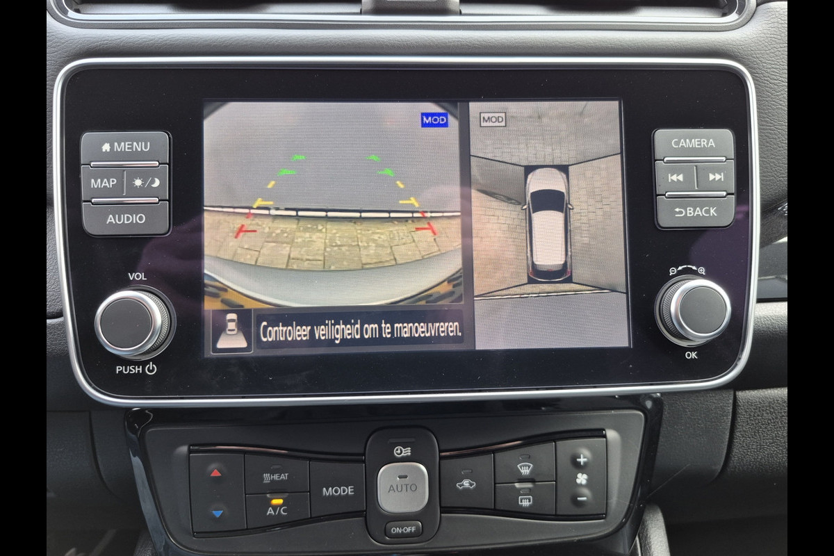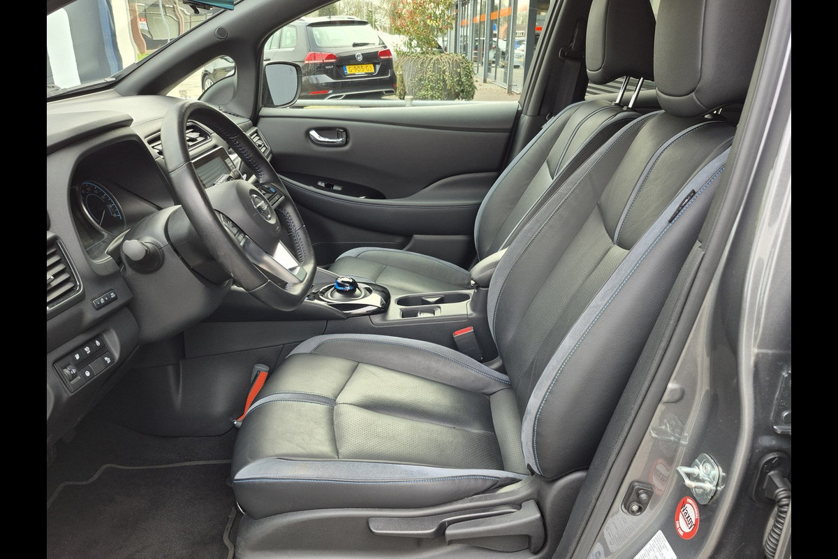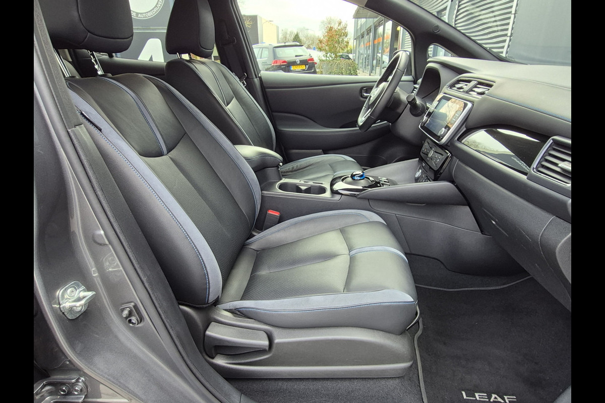 Keurige Nissan Leaf 62 kwh!! Voorzien van lederen bekleding met stuur en stoelverwarming, 360 graden camera, climate control, navigatie, etc.