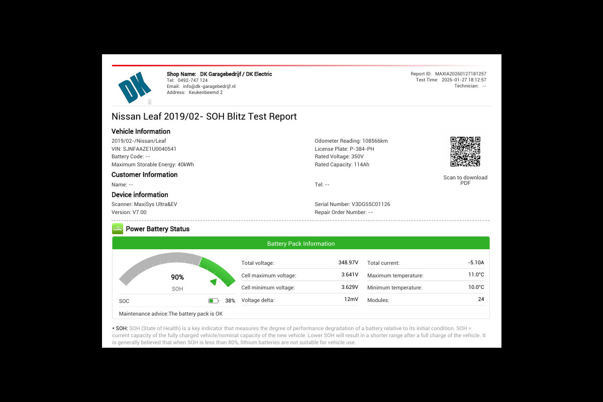 Accu: 40 kWh, Conditie: 90%