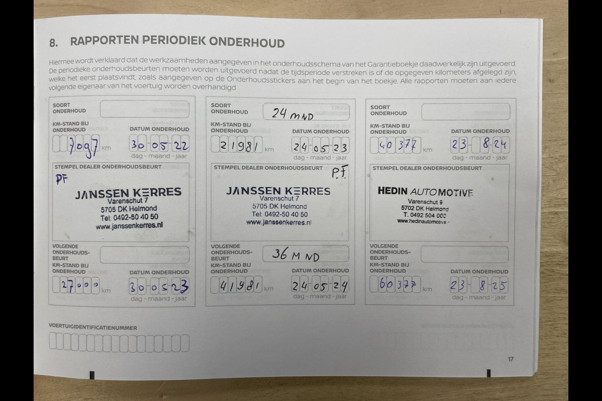 Onderhoudsboekjes: Aanwezig