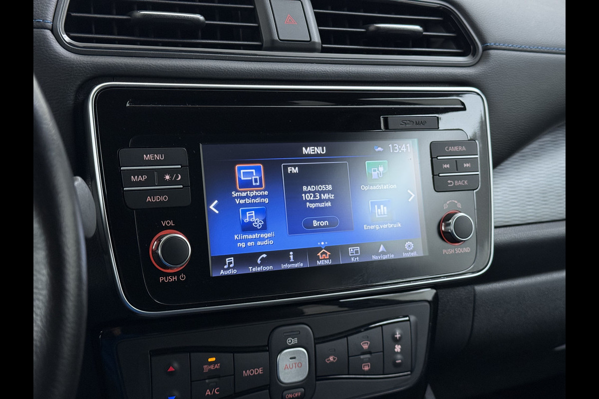 Nissan Leaf Tekna 40kWh Leer Bose®-Hifi Apple Carplay Android Auto Adap.Cruise 360°Camera Navi Ecc Stoel+Stuurverwarming Keyless DAB Dodehoek detector Rijstrooksensor Uitparkeer waarschuwing Verkeersbord detectie Bluetooth Privacy Glas Lmv 17" SOH 87.7% Origineel Nederlandse Auto incl. onderhoudshistorie