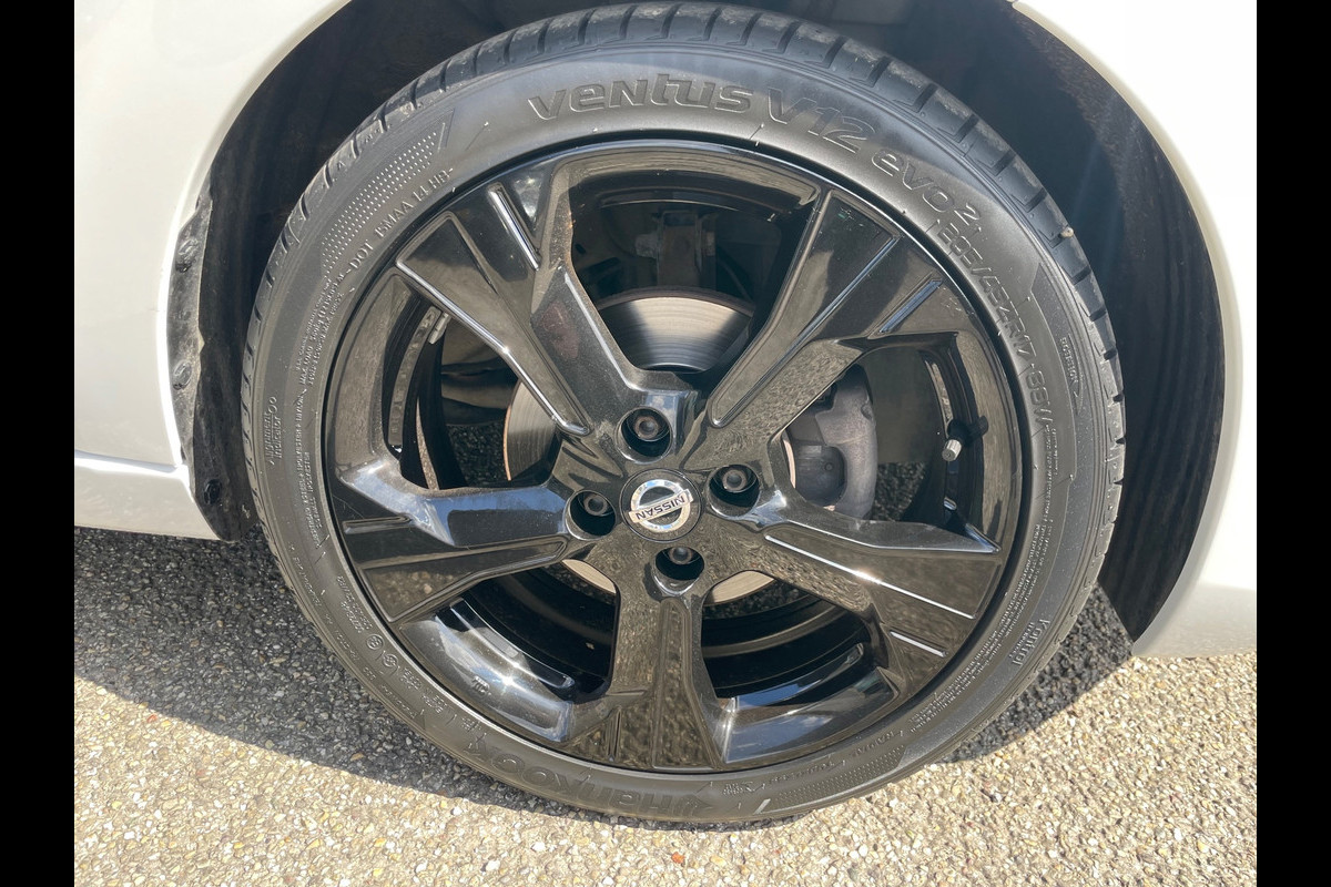 Aan boord van deze Nissan houden verschillende geavanceerde systemen voor u de weg in de gaten. Ze waarschuwen u voor noodsituaties en kunnen in een aantal gevallen ook zelf ingrijpen. Onderweg fungeert de verkeersbord-detectie als het ware als uw bijrijder en attendeert u op de verkeersborden langs de weg. Het Lane-keeping systeem registreert permanent of u binnen de lijnen van de rijstrook blijft; dwaalt u onbedoeld af, dan waarschuwt het systeem en corrigeert de koers. Forward collision warning is een automatisch waarschuwingssysteem dat direct in werking treedt bij gevaar voor een kop-staartbotsing. Bovenop deze veiligheidsfeatures heeft deze Nissan bovendien accident avoidance system, hill hold functie, brake assist en bandenspanningcontrolesysteem.