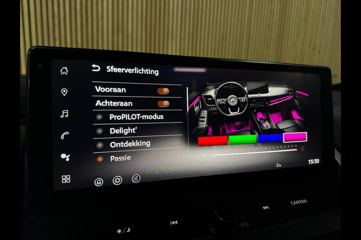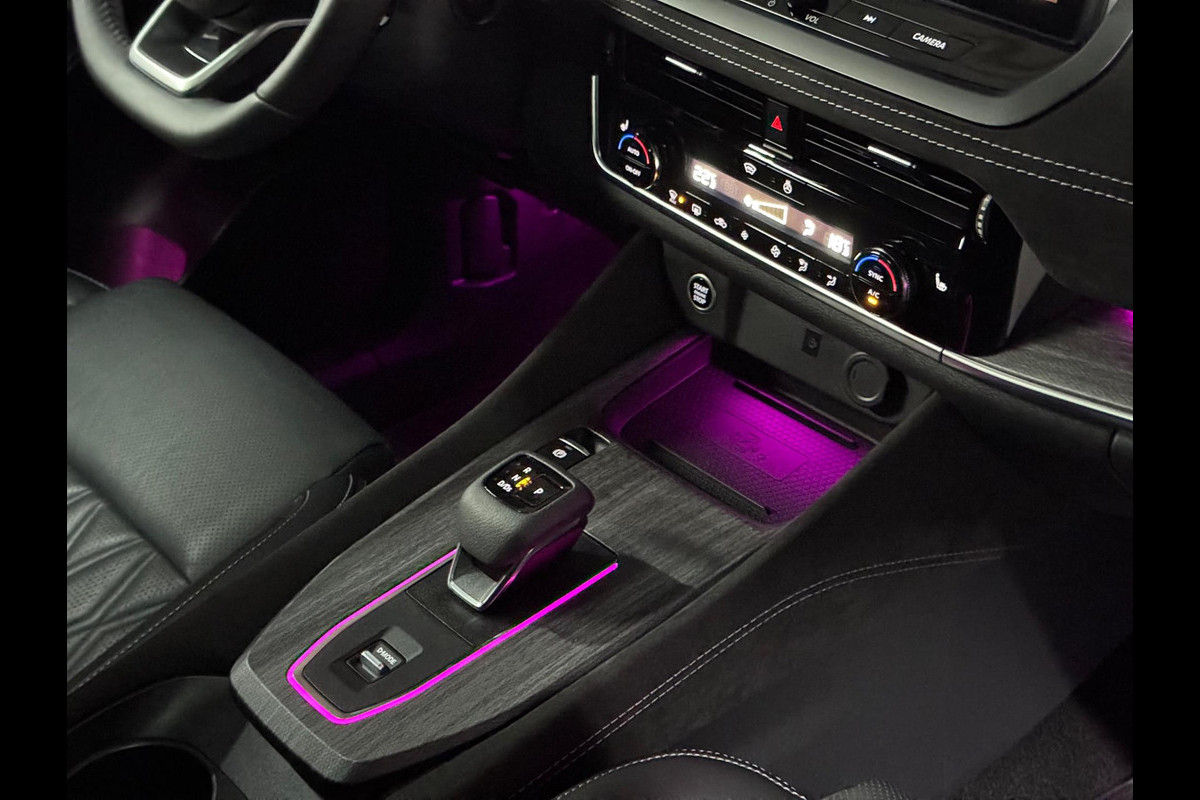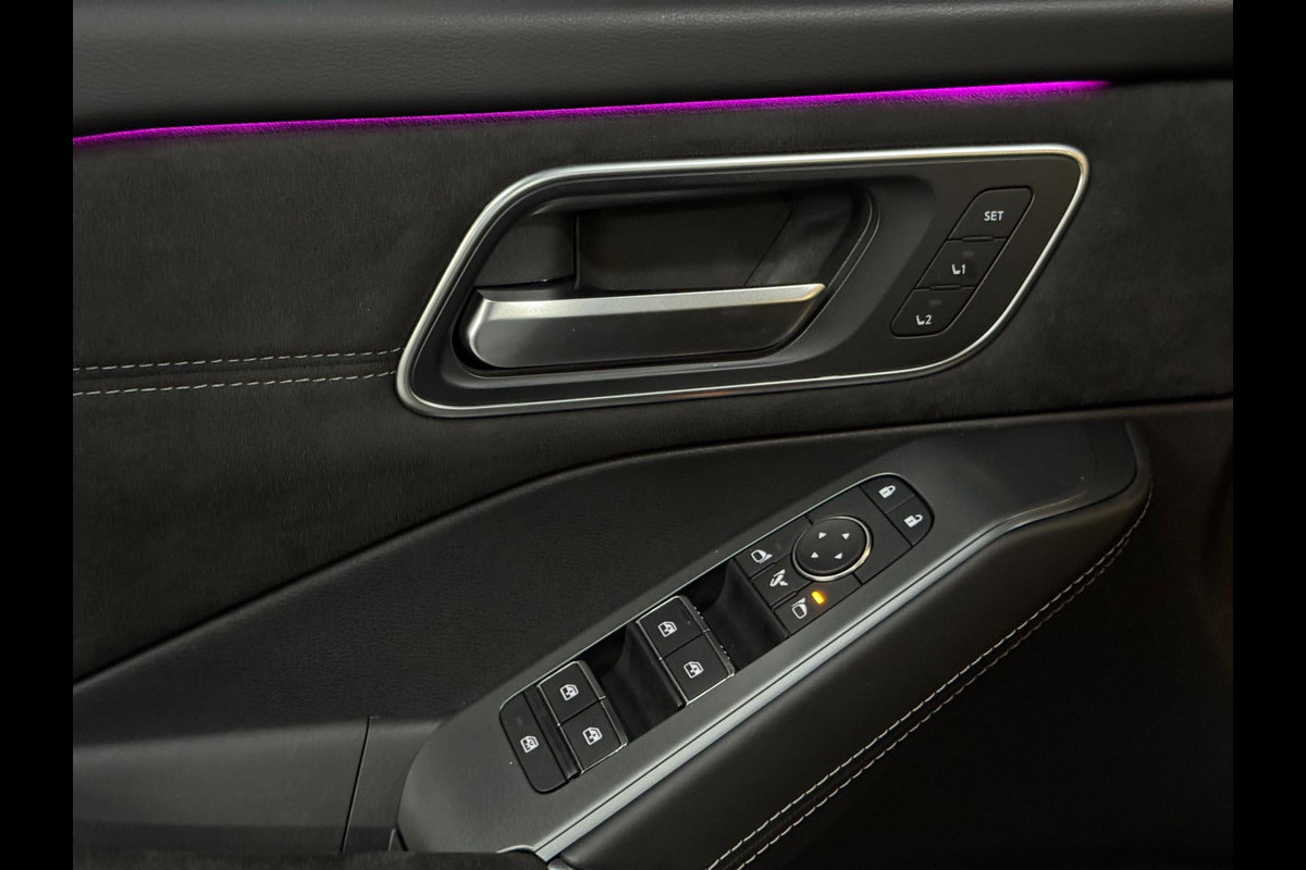 Deze FULL OPTION uitgevoerde Qashqai is voorzien van een panoramisch glazen dak, premium lederen bekleding, elektrisch verstelbare voorstoelen met geheugenfunctie, stoelmassage, stoelverwarming, stuurverwarming en een verwarmde voorruit. Ook aan gebruiksgemak is gedacht met keyless entry & go en een elektrisch (handsfree) bedienbare achterklep.