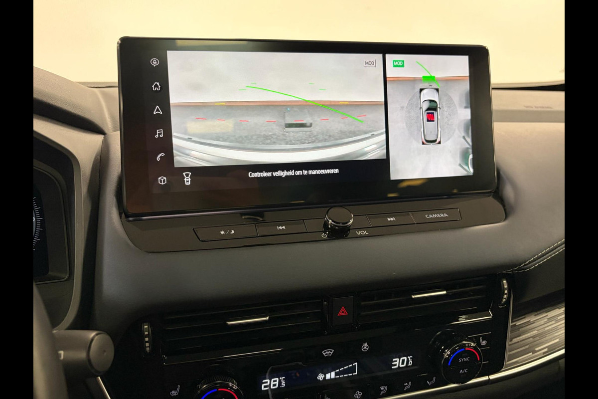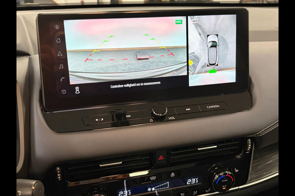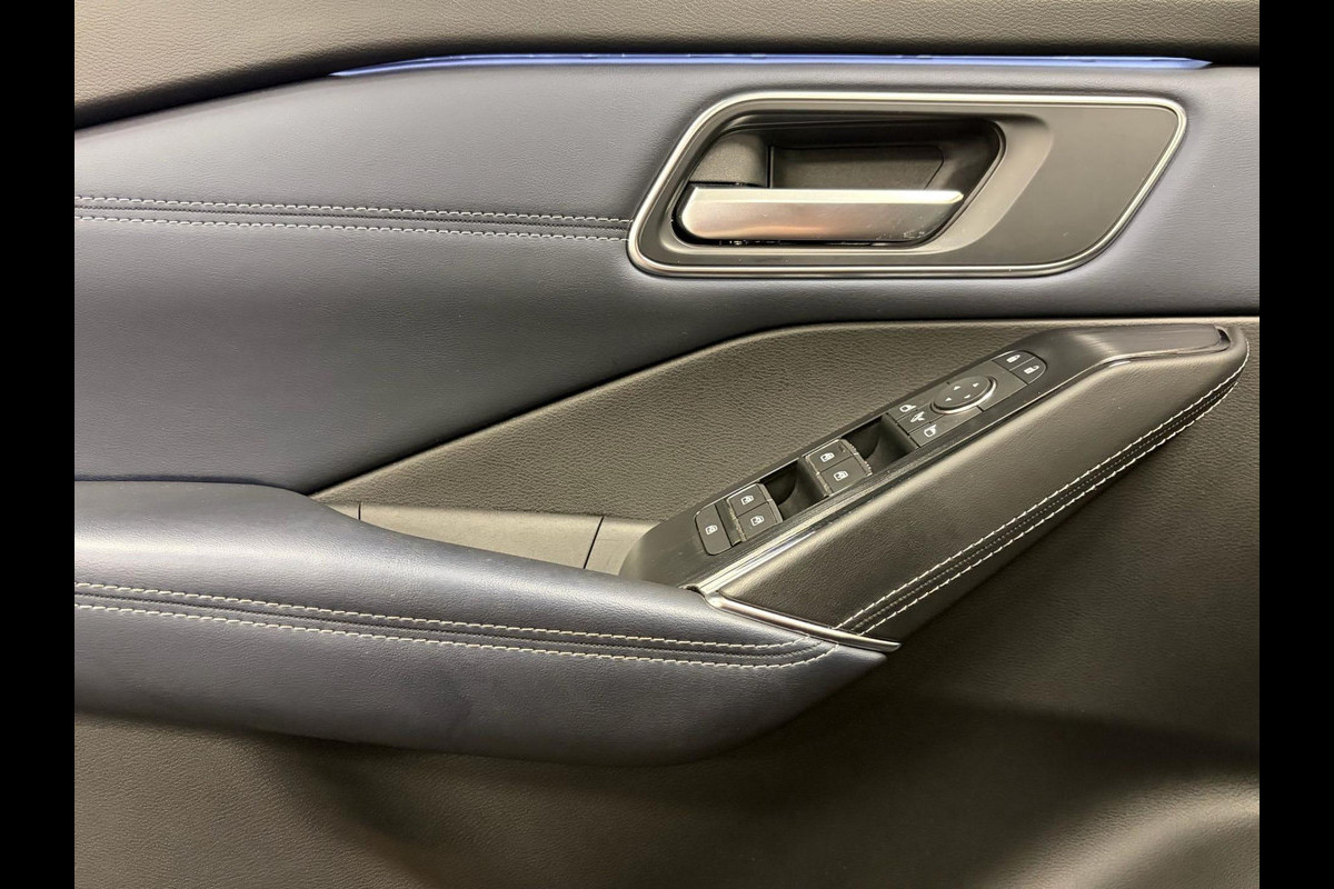 Via het digitale dashboard bent u permanent op de hoogte van alle informatie die u nodig heeft voor een veilige rit. De vier camera's genereren samen een 360 graden beeld rond de auto, zodat u een volledig overzicht hebt van wat er rondom uw auto gebeurt. Met adaptive cruise control houdt de auto zelfstandig afstand tot uw voorligger. Een veiligheidsverhogende optie waarmee u comfortabel onderweg bent. Communiceren met uw auto? Dat gaat via remote services. Met uw smartphone maakt u waar dan ook contact om allerlei functies te checken of te activeren. Deze Nissan is voorzien van knoppen op het stuur om het navigatiesysteem en het audio-installatiesysteem met DAB-ontvangst te bedienen. En deze auto heeft ook achteropkomend verkeer waarschuwing, kruisend verkeer detectie, automatische airconditioning, draadloos opladen, regensensor en keyless entry als standaard uitrusting.