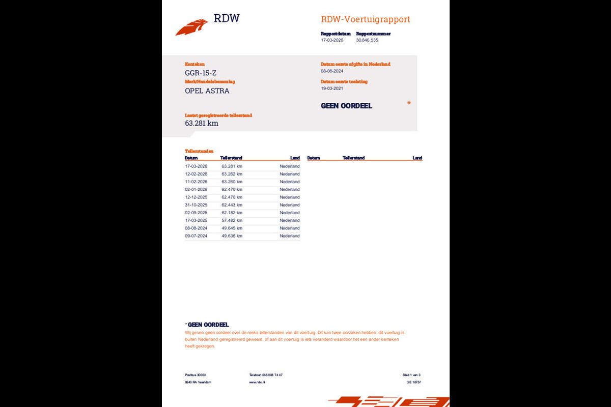 • Gecontroleerde kilometerstand (NAP).