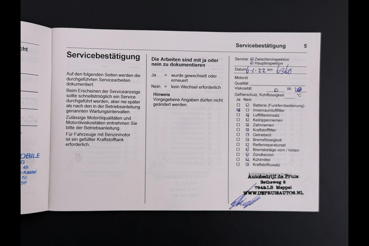 Onderhoudsboekjes: Aanwezig