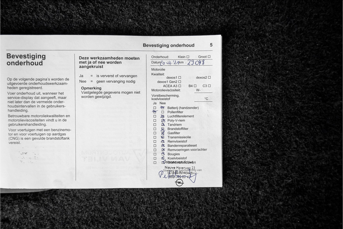 Onderhoudsboekjes: Aanwezig