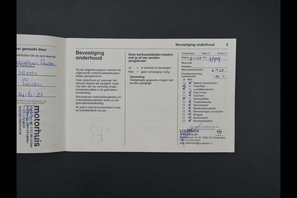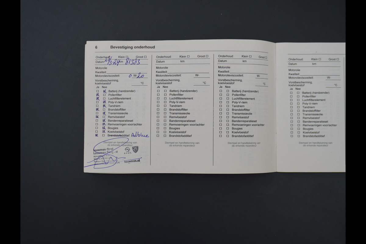 Onderhoudsboekjes: Aanwezig