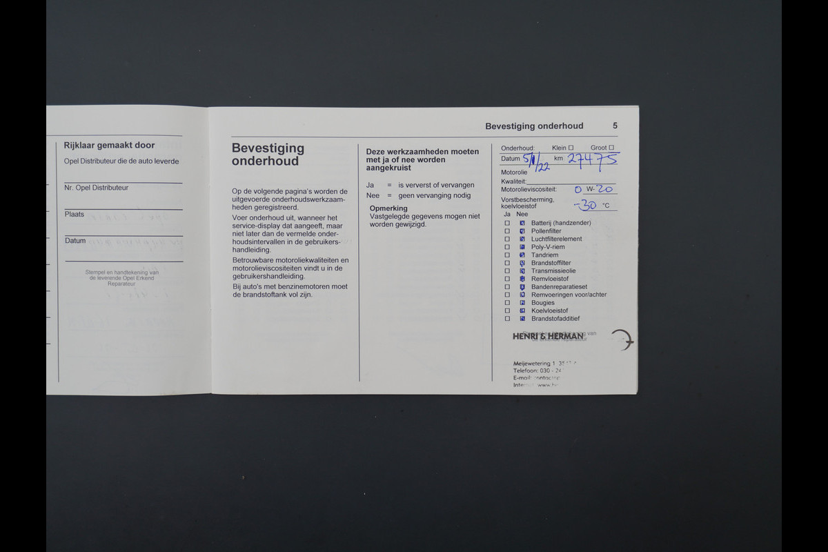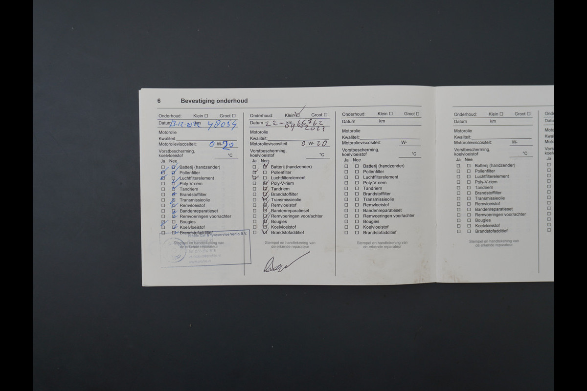 Onderhoudsboekjes: Aanwezig