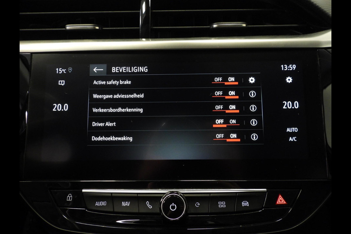 De nieuwste veiligheidssystemen komen in deze Opel Corsa-e samen. Een belangrijke bijdrage aan de veiligheid onderweg levert de verkeersbord-detectie in deze Opel. Het Lane-keeping systeem garandeert dat u zich niet onverhoeds buiten de lijnen van de rijstrook begeeft. Kop-staartbotsingen vormen een belangrijk deel van de meest voorkomende aanrijdingen. De forward collision warning van deze auto voorkomt zulke botsingen geheel of reduceert de ernst van de schade aanzienlijk. U bent mede dankzij dodehoekdetectie, hill hold functie, vermoeidheidsherkenning, autonoom remsysteem en bandenspanningcontrolesysteem steeds veilig onderweg.