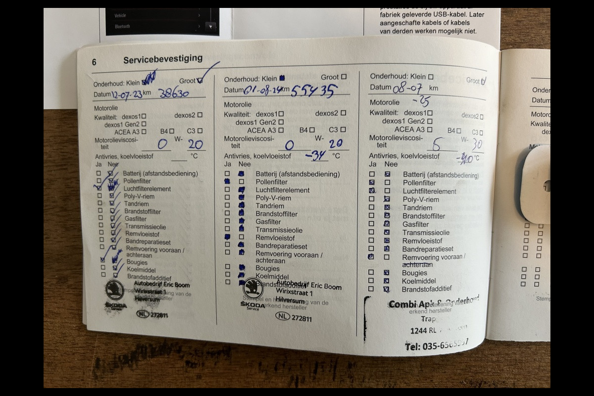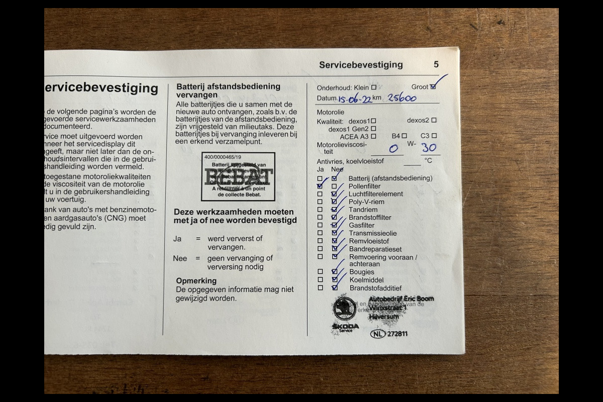 Onderhoudsboekjes: Aanwezig
