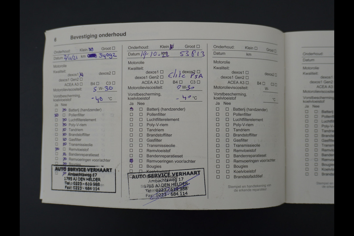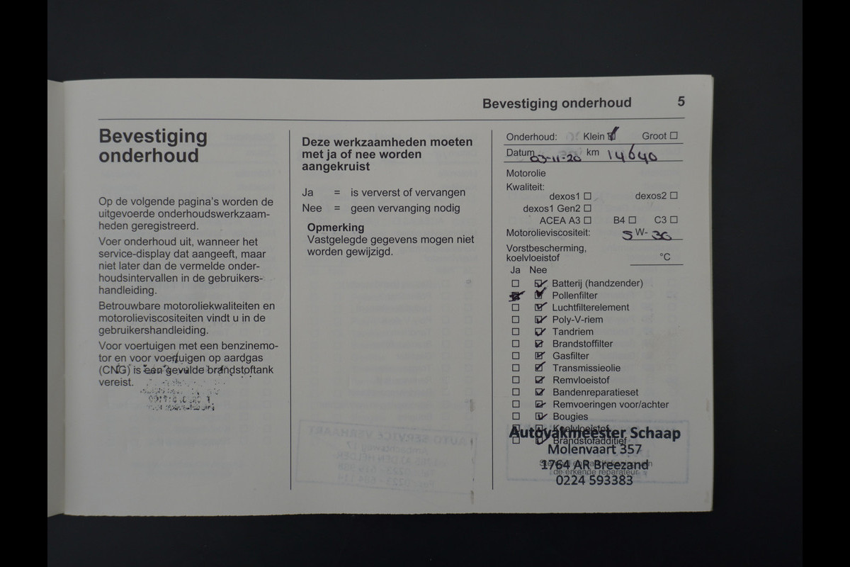 Onderhoudsboekjes: Aanwezig