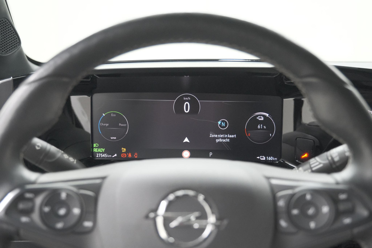 Het digitale dashboard is een perfecte bijrijder. Alles benodigde informatie is permanent zichtbaar of opvraagbaar. De hoogwaardige achteruitrijcamera en het display met hoge resolutie zorgen dat helemaal niets u meer ontgaat van wat er achter de auto gebeurt. Adaptive cruise control houdt de ingestelde snelheid vast en houdt afstand tot het voertuig voor u. Deze Opel Mokka Electric is voorzien van remote services. Via uw smartphone bedient u diverse functies ook op afstand en krijgt u informatie over de status van uw auto. Naast de routeinformatie van het navigatiesysteem kunt u muziek via het audiosysteem ook online beluisteren via bluetooth. De Opel is standaard voorzien van: electronic climate control, DAB ontvangst, regensensor, keyless entry, automatisch dimmende binnenspiegel en centrale deurvergrendeling met afstandsbediening.