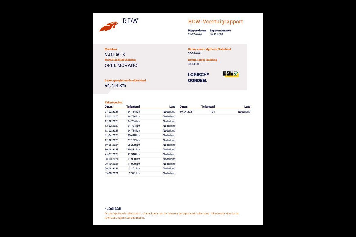 Dit afleverpakket bevat: Geldige APK, RDW-leges