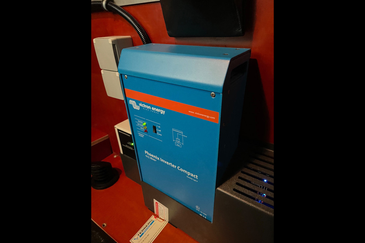 - Stroom op locatie verschillende v230 stopcontacten en 12v aansluitingen doormiddel van een Victron omvormer 12volt voor 230v / 220v met accu. Deze wordt geladen als de bus rijd.