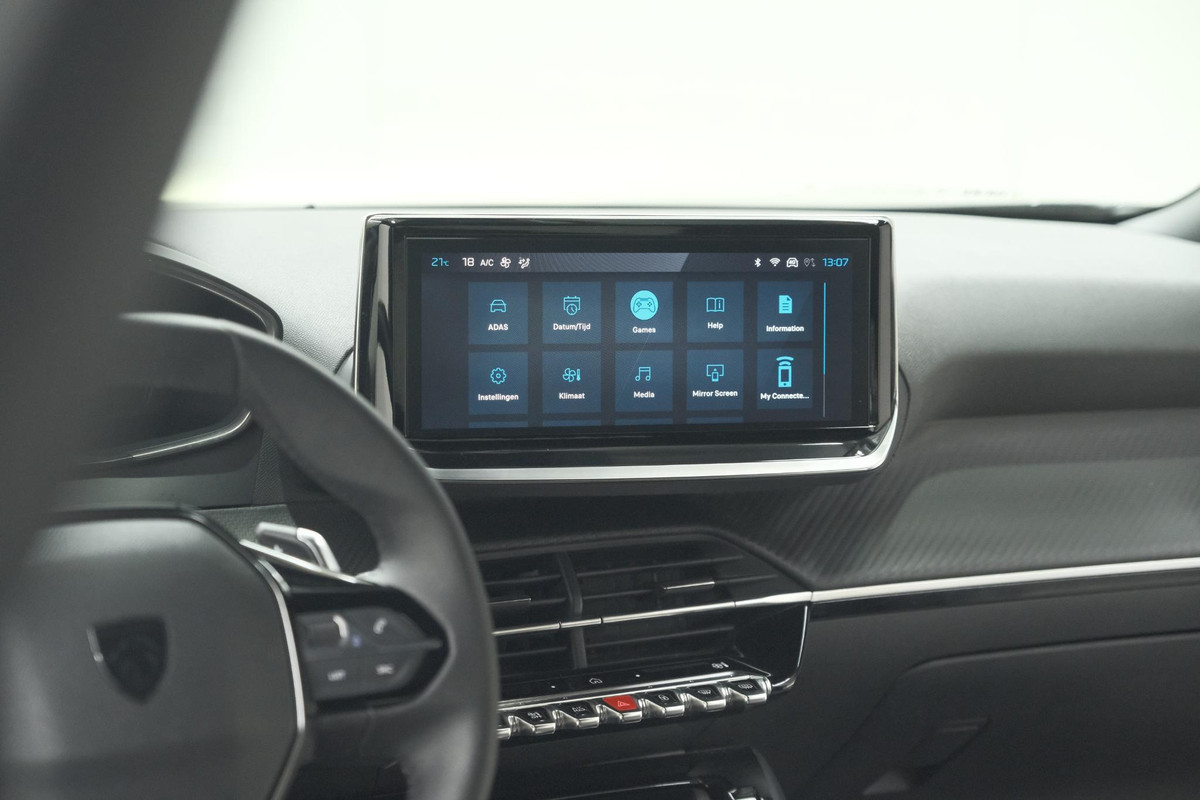 In deze auto zijn verschillende technologieën aanwezig die voor u het verkeer en de omgeving in de gaten houden en die desnoods ook kunnen remmen of bijsturen. In het instrumentarium kunt u bovendien de verkeersborden zien die u onderweg tegenkomt. Zo helpt deze Peugeot u om veiliger te rijden. Het Lane-keeping systeem registreert permanent of u binnen de lijnen van de rijstrook blijft; dwaalt u onbedoeld af, dan waarschuwt het systeem en corrigeert de koers. Het systeem van forward collision warning, of in gewoon Nederlands 'botswaarschuwing', treedt in werking als de sensor te weinig afstand signaleert met een voor- of tegenligger. Dankzij veiligheidsvoorzieningen als dodehoekdetectie, hill hold functie, vermoeidheidsherkenning, autonoom remsysteem en bandenspanningcontrolesysteem, bent u steeds veilig onderweg.