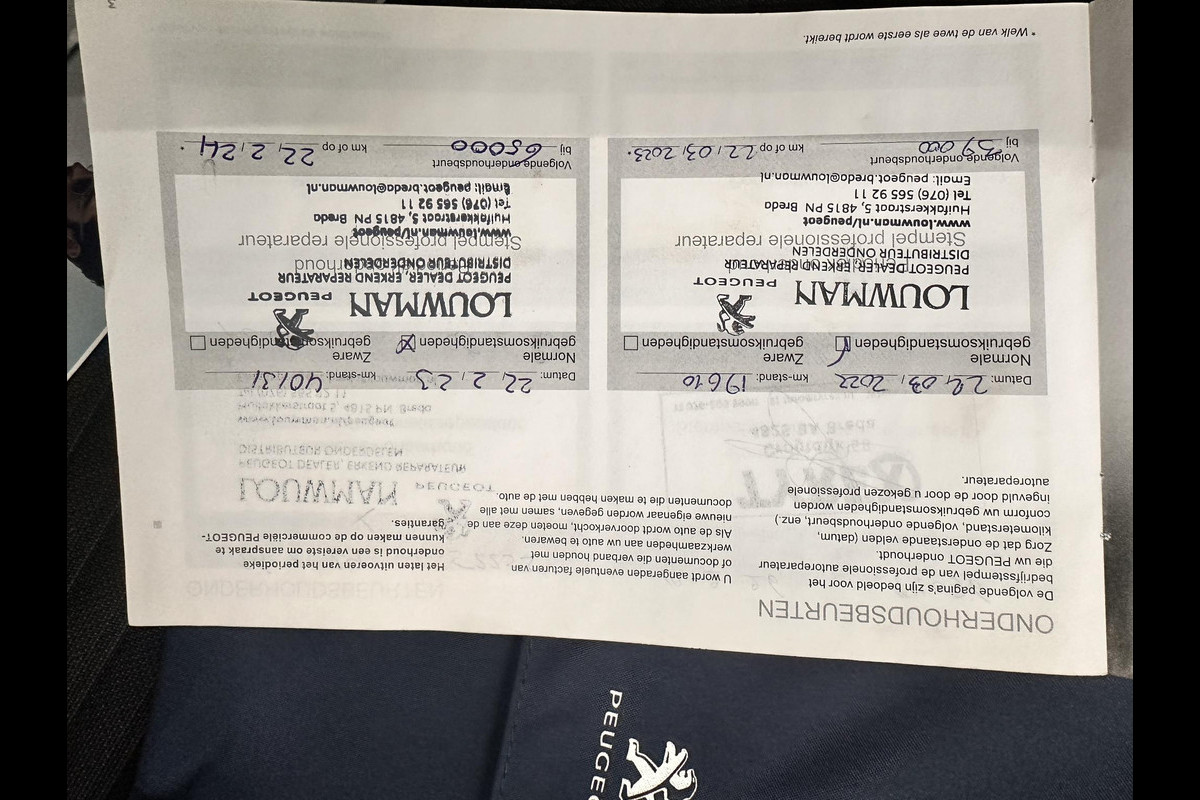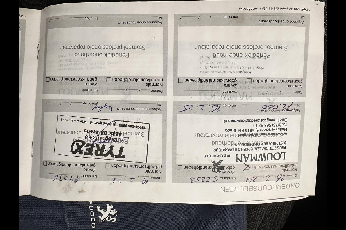 Alle werkzaamheden zijn uitgevoerd door erkende specialisten, waaronder Peugeot-dealer Louwman Breda en Bosch Car Service.