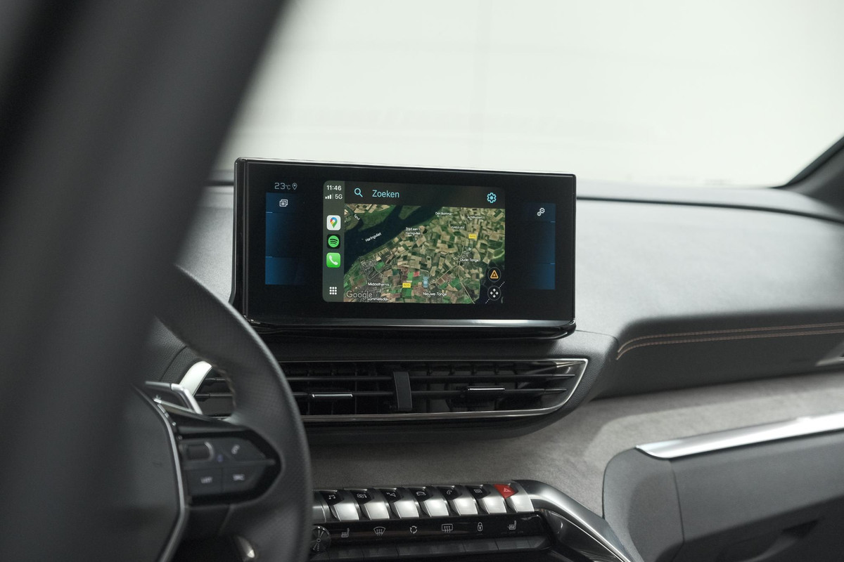 Het digitale dashboard vertelt u onderweg alles dat bijdraagt aan een veilige, efficiënte rit. Hoeveel ruimte heeft u nog bij het inparkeren? De achteruitrijcamera brengt helder in beeld wat zich achter de auto bevindt en geeft een geluidssignaal. Adaptive cruise control is een comfortabele en veilige optie. Het systeem reguleert de snelheid en houdt automatisch afstand tot uw voorligger. Vergeten af te sluiten? Bandenspanning onvoldoende? De speciale app geeft u direct een seintje met behulp van Connected Services. Het full map navigatiesysteem en het audiosysteem (met DAB-ontvangst!) bedient u met knoppen op het stuur of met gesproken commando's. De Peugeot is standaard voorzien van: electronic climate control, regensensor, keyless entry, buitentemperatuurmeter, automatisch dimmende binnenspiegel en lederen stuur.