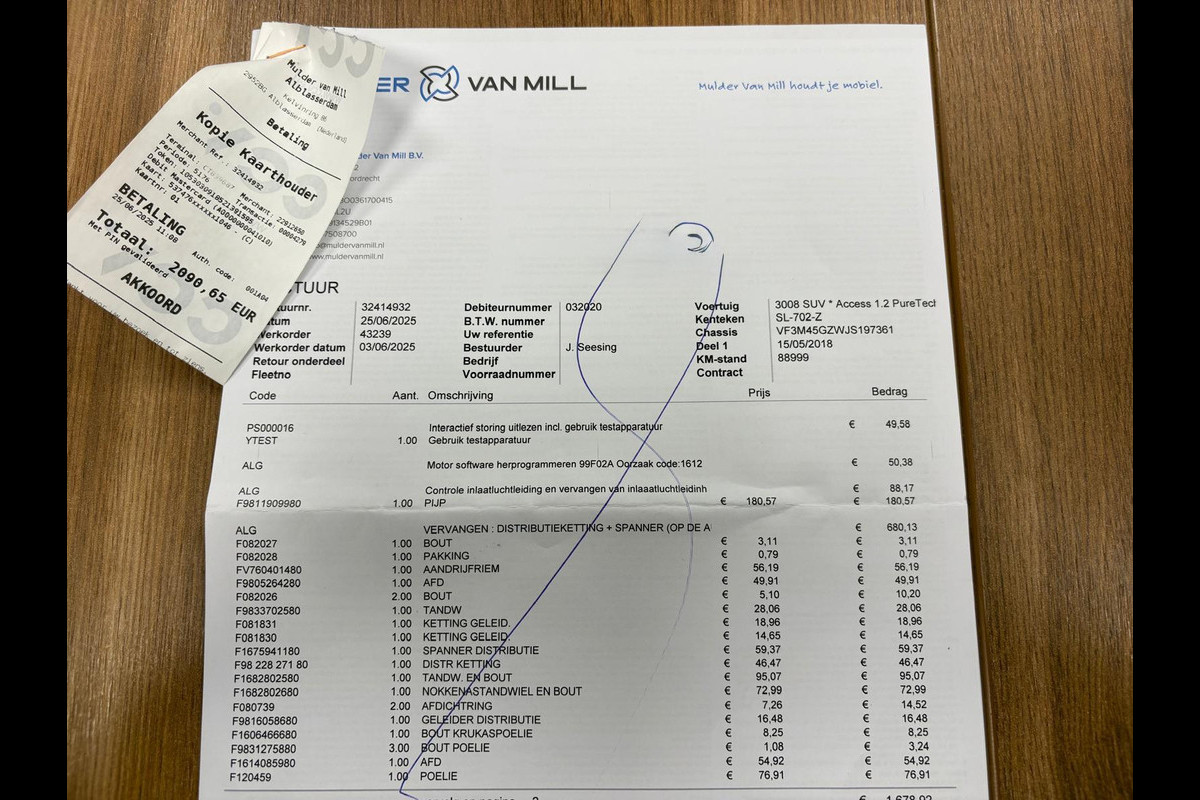 Nieuwe Distributie ketting, zie laatste foto van de factuur. Origineel bij Peugeot vervangen voor ongeveer €2100