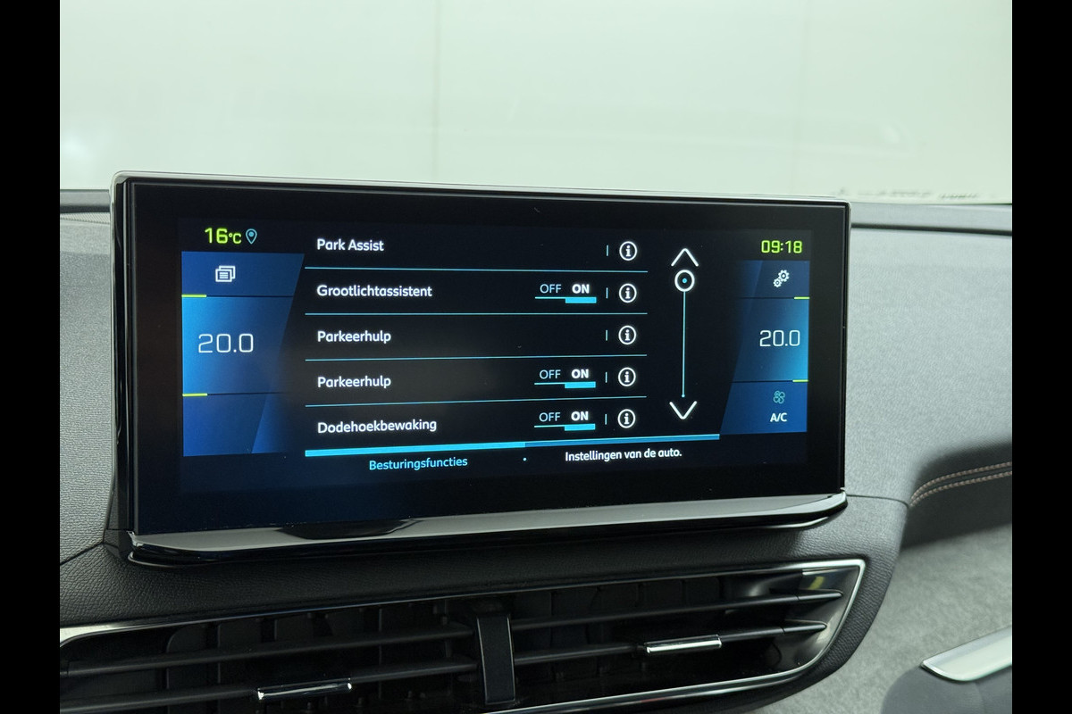 De geavanceerde technologie in deze Peugeot is in staat om onderweg het verkeer om u heen te monitoren en er op te reageren. Zo hebt u als het ware een automatische co-piloot aan boord. De auto is voorzien van head-up display, waarbij alle belangrijke informatie wordt geprojecteerd in uw gezichtsveld. U hoeft uw ogen geen seconde van de weg te halen! In het instrumentarium ziet u tijdens de rit ook de belangrijkste verkeersborden aangegeven, die de auto automatisch voor u leest. Het Lane-keeping systeem zorgt voor een automatisch constante positie binnen de rijstrook. Afdwalen is uitgesloten. De auto is ook uitgerust met dodehoekdetectie, forward collision warning system, hill hold functie, brake assist, vermoeidheidsherkenning en bandenspanningcontrolesysteem.