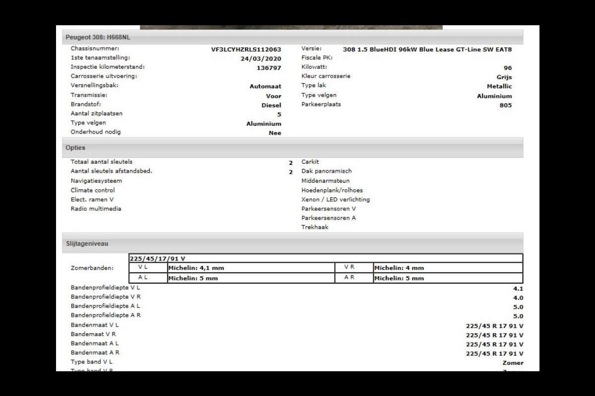 Het kan echter voorkomen dat uit de automatische voertuiginformatie een optie of accessoire naar voren komt die helaas toch niet op de auto aanwezig is.