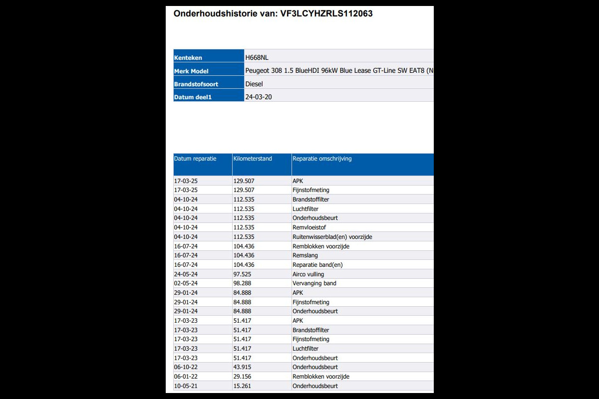 Onderhoudsboekjes: Aanwezig (dealer onderhouden)