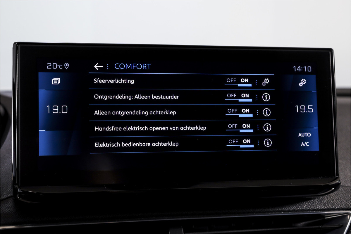 De adaptieve cruise control maakt lange ritten ontspannen, terwijl de Dodehoek detector helpt om veilig van rijbaan te wisselen. Voor extra gebruiksgemak beschikt deze 5008 over een elektrisch bedienbare achterklep met sensorsturing – handig bij het inladen van bagage of boodschappen, zelfs met volle handen.