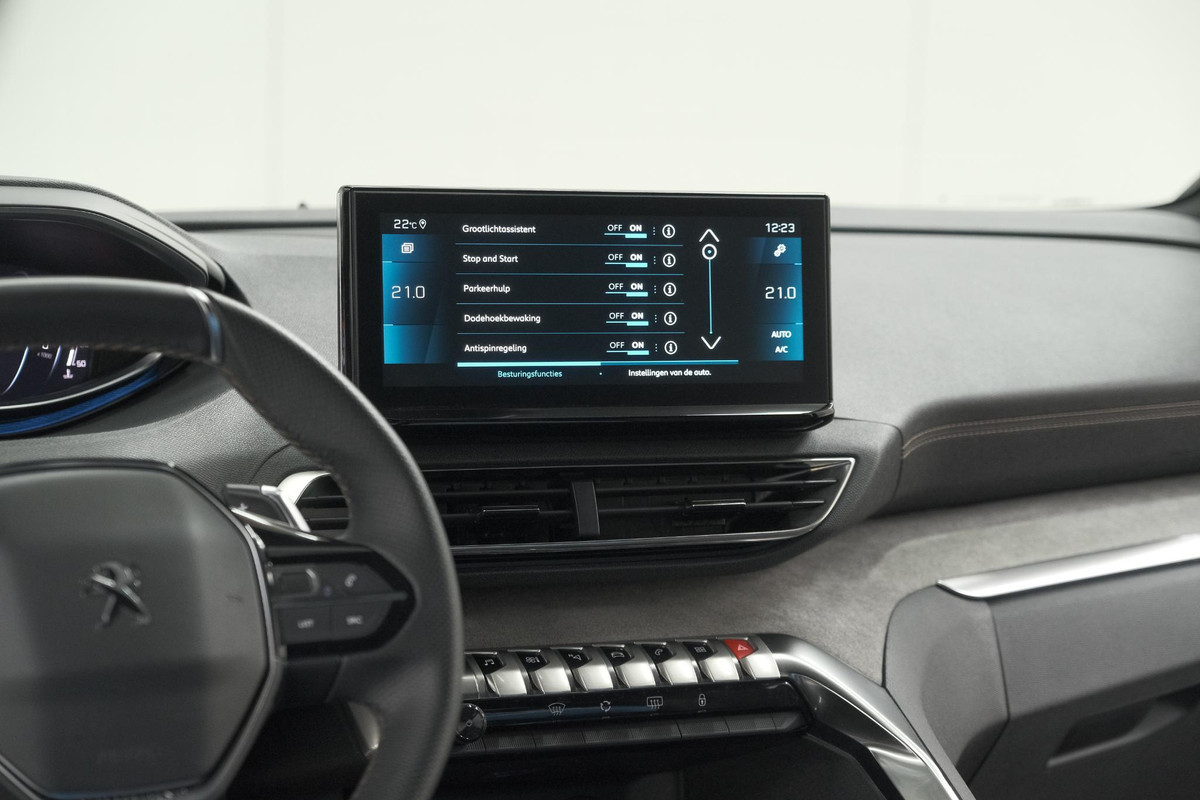 Alle functies voor een veilige en zuinige rit worden overzichtelijk weergegeven op het digitale dashboard. Adaptive cruise control houdt de ingestelde snelheid vast en houdt automatisch afstand tot uw voorligger. Spraaksturing luistert naar uw stem en bedient de belangrijkste voertuigfuncties. De kortste weg, de zuinigste weg, de snelste weg... elke weg is te vinden met het full map navigatiesysteem. De automatische airconditioning zorgt voor een behaaglijk klimaat in de auto. Deze Peugeot is voorzien van parkeersensoren achter, regensensor, sportstuurwiel, keyless entry, automatisch dimmende binnenspiegel en centrale deurvergrendeling met afstandsbediening.