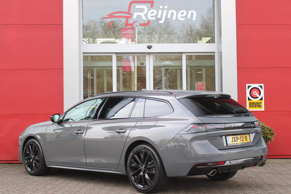 Peugeot 508 SW 1.6 HYbrid 225PK ALLURE BLACK PACK MATRIX LED KOPLAMPEN | ADAPTIEVE ACHTERVERLICHTING | SFEERVERLICHTING | NAVIGATIE | DRAADLOOS APPLE CARPLAY/ANDROID AUTO | HD CAMERA'S VOOR EN ACHTER PLUS 360 | ADAPTIEVE CRUISCONTROL | COMFORT BUSINESS PACK - AGR VOORSTOELEN MET UITSCHUIFBARE NEUS, STOELVERWARMING, ELEKTRISCH VERSTELBARE HELLINGSHOEK/LENDESTEUN | DODEHOEKBEWAKING | 18'' LICHTMETALEN VELGEN TYPE SPERONE BLACK | DONKERE HEMELBEKLEDING | ELEKTRISCH BEDIENBARE ACHTERKLEP | GLANZEND ZWARTE DAKRAILING | EXTRA GETINTE ACHTERRUITEN |