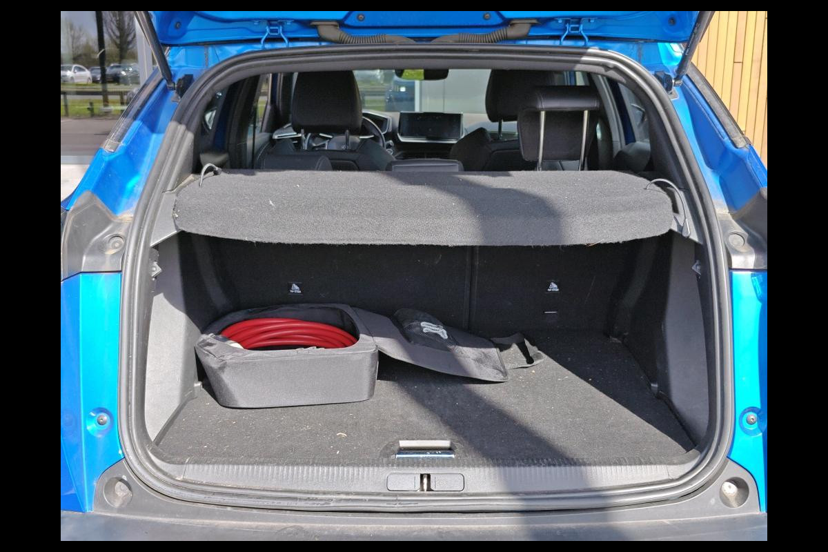 Zoals u mag verwachten van deze Peugeot e-2008 is hij uitgerust met een reeks aan actieve veiligheidssystemen. Dat de auto steeds meer taken van de bestuurder overneemt, merkt u bijvoorbeeld aan het systeem voor verkeersbord-detectie in deze auto. Het Lane-keeping systeem let constant op en waarschuwt of corrigeert als u onoplettend over de lijnen van de rijstrook gaat. Forward collision warning waarschuwt bij een dreigende aanrijding met een voorligger. De auto is ook uitgerust met hill hold functie, vermoeidheidsherkenning, autonoom remsysteem en bandenspanningcontrolesysteem.