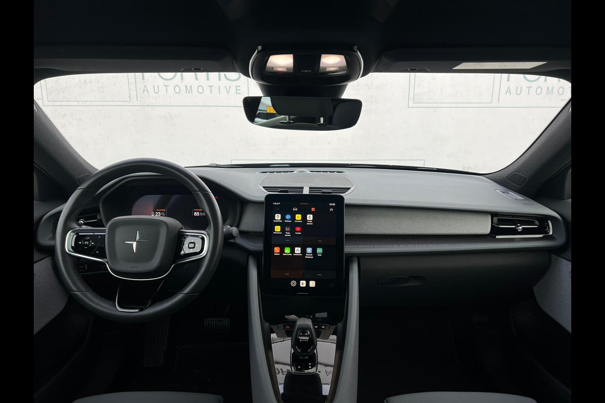 Natuurlijk brengt het digitale dashboard alle ritinformatie perfect in beeld. Maar ook communicatie, navigatie en tal van andere functies zijn permanent te volgen. Met de 360 graden camera, verzorgd door vier camera's, wordt rijden in drukke steden of het navigeren in nauwe ruimtes een koud kunstje. Adaptive cruise control houdt de ingestelde snelheid vast en houdt automatisch afstand tot uw voorligger. U weet altijd hoe de auto eraan toe is dankzij Connected Services. Ook handig voor de garage en de wegenwacht. Even de app uitlezen en klaar! Muziek luisteren onderweg was nog nooit zo'n genoegen! Het high performance audiosysteem levert een unieke geluidservaring. Deze Polestar is voorzien van full map navigatiesysteem, WIFI-hotspot, automatische airconditioning, draadloos opladen, DAB ontvangst en regensensor.