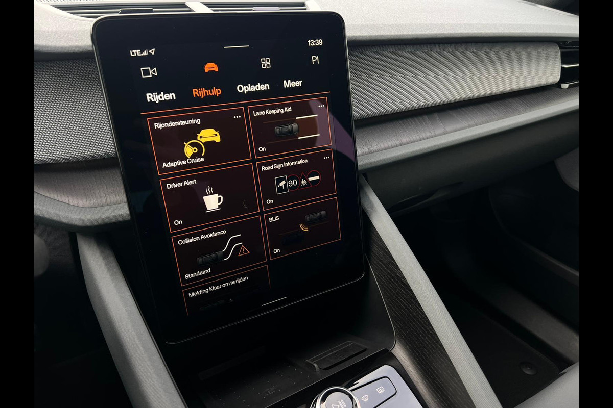De Polestar 2 is uw trouwe partner onderweg, want hij houdt continu voor u de situatie op en om de weg in de gaten. Volautomatische veiligheidssystemen kunnen daarbij ingrijpen om u voor gevaarlijke situaties te behoeden. Dat de auto steeds meer taken van de bestuurder overneemt, merkt u bijvoorbeeld aan het systeem voor verkeersbord-detectie in deze Polestar. Keep your lane? Het Lane-keeping systeem zorgt er automatisch voor. De actieve dodehoekdetectie helpt ongelukken te voorkomen. Verder is deze auto uitgerust met forward collision warning system, hill hold functie, vermoeidheidsherkenning, autonoom remsysteem en bandenspanningcontrolesysteem.