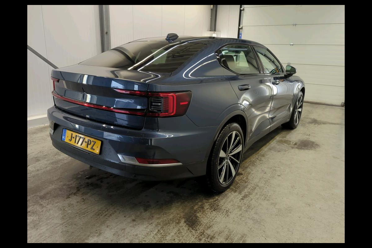 Duurzame mobiliteit is niet langer een ongrijpbare droom. Polestar maakt het waar met de innovatieve elektrische 2. Geruisloos genieten tegen lage kosten? Dan is deze elektromotor iets voor u! De krachtige motor geeft deze Polestar uitstekende prestaties. Op koude en donkere dagen zijn de verwarmbare voorstoelen een uitkomst. De bagageruimte is toegankelijk via een comfortverhogende elektrische achterklep. Overdag een weidse zichthoek en 's avonds het lichtspel in de binnenruimte: dat geeft het glazen panoramadak! Waarom zou je alleen voorin behaaglijk mogen zitten? Daarom is er óók een verwarmde achterbank. Tot de voorzieningen van deze auto behoren 19 inch lichtmetalen velgen, LED koplampen, in delen neerklapbare achterbank, LED-achterlichten en verstelbare lendensteunen.